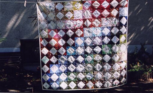 genäht wurde. Er besteht aus 169 Blöcken, 52 Dreiecken und 4