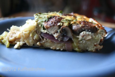 Zum heutigen Veggie-Tag gibt es eine leckere Champignon-Quiche. Dieses Mal enthält der Boden Kartoffeln. Auch eine leckere Teig-Variante.