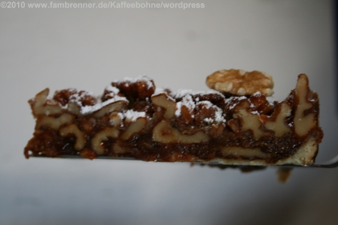 Das Rezept der Kalifornischen Walnut-Tarte ist mir in der Kochen und Geniesen sofort aufgefallen und es kam auf die Nachbackliste. Beim Lesen des Rezeptes war mir prinzipiell schon klar auf was ich mich einlasse, aber ich wollte sie unbedingt probieren. Letztendlich wäre ein leichter Rhabarberkuchen bei sommerlichen Temperaturen verträglicher gewesen.