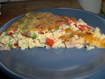 Geschmeckt hat die Frittata sehr lecker. Ich mag TK-Erbsen nicht so besonders, aber es waren ja nicht so viele.