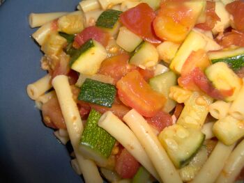 4. Die Nudeln abgießen und mit der Soße vermischen.